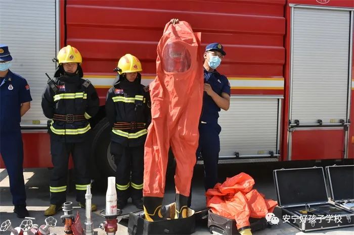 為了讓消防知識在同學們心中扎根,實操演練結束后,消防指戰員還向大家講解了消防水泵、滅火毯、防煙面罩、多路閥、隔熱服、破拆工具、水帶等消防器械的功能及其使用方法。