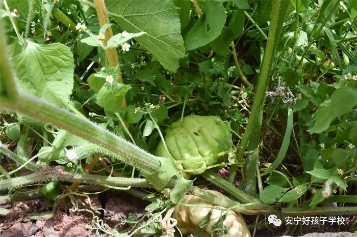 童心正盛的孩子們,有的靜靜聆聽溝渠里青蛙的重奏,還不忘臨摹幾聲;有的看見蝸牛,好奇地放在手里仔細(xì)端詳;有的和老師一起,為瓜藤找一個延伸之地;有的拿著果實東瞧瞧西看看,趁老師不注意偷偷咬上一口嘗鮮,一副“小饞貓”的樣子。一旁的老師連連說道,生蔬菜不能吃,小心吃壞肚子,但孩子們卻猶如勝利的將軍。采摘結(jié)束,孩子們在老師的帶領(lǐng)下,使出渾身解數(shù),齊心協(xié)力、干凈利落地對和蔬菜搶營養(yǎng)的雜草“斬草除根”,讓菜園更加生機勃勃。