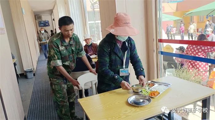 到達目的地后,同學們就立即行動起來。有的協助社區工作人員布置活動現場,有的幫助爺爺奶奶領牌登記,有的維持現場秩序,有的幫忙打飯、倒水......老人被孩子們的真誠熱情深深打動,和孩子們親熱地閑聊起來。孩子們得體的言談和暖心的行動,得到老人們的交口稱贊。養老服務中心不時傳來陣陣歡笑聲,呈現出一派其樂融融的景象。