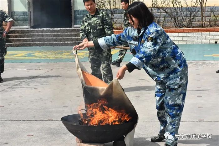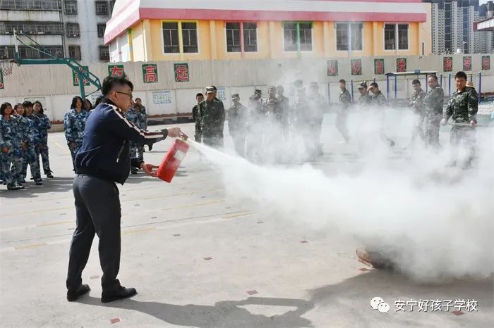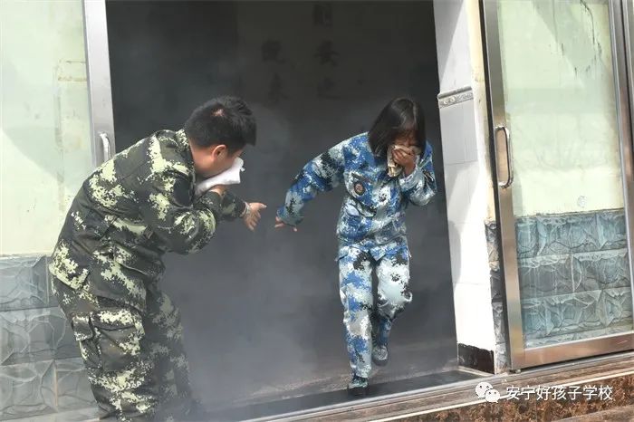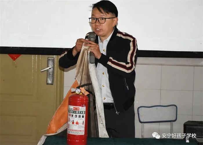 為了讓理論與實踐相結合,安全知識講座結束后,學校還組織師生進行了消防應急演練活動。在緊張的逃生演練環節,孩子們在老師的指引下,用濕毛巾捂住口鼻,彎腰曲背小步快走,迅速有序地按照緊急預案的疏散路線離開宿舍、教室,成功撤出,安全到達指定位置,全程僅用時一分鐘。隨后進行火災撲救演練活動。演練前,唐老師再次詳細講解了滅火器、滅火毯的正確使用方法,并示范動作要領,全體師生認真學習,并親身體驗。