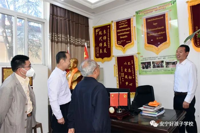 老省長懷著對學校的關心、關切之情,親切地走進學校的辦公區、教學區、生活區等全面查看。在走訪心理輔導室時,老省長駐足良久,饒有興致地和我校心理教研組長趙松瑞(國家二級心理咨詢師)做了深入的交流,趙老師還現場解讀了幾個沙盤的案例。隨后,在多媒體教室觀看了學校教學活動短片,全方位、深層次地了解學校。其間,魯校長就學校的辦學定位、發展理念、辦學特色、安全管理、辦學成績等逐一向老省長作了匯報。