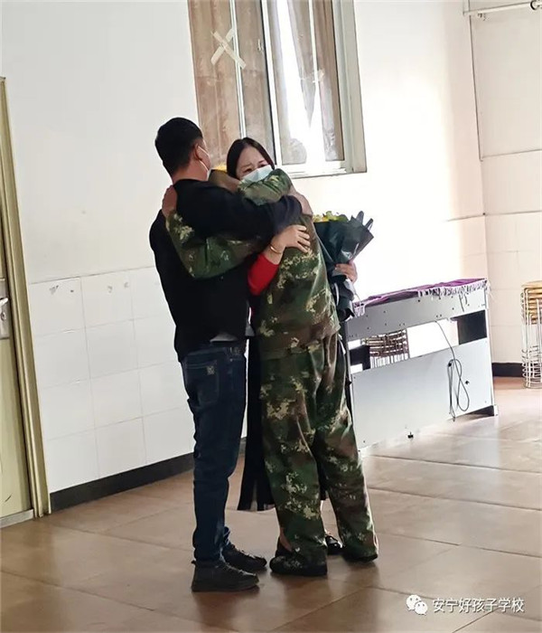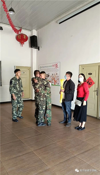 秦金波同學(xué)的華麗蛻變讓這個堅強的父親忍不住落下了熱淚,他哽咽地說:“這是孩子第一次和我們分開這么久,八個月里,思念每天都充斥著我們的內(nèi)心,夜深人靜時也偷偷流下了無盡的淚水,孩子不在我們身邊的日子,總擔(dān)心他吃得好不好?穿得暖不暖?會埋怨我們送他到這里吃苦嗎?他也會像我們想他一樣想我們嗎?剛剛孩子和我們緊緊擁抱的那一刻,真的久違了!我已記不清上一次和孩子擁抱是什么時候了,曾經(jīng)看著他和我們漸行漸遠的背影,心如刀割。孩子來到好孩子學(xué)校后,我們每次來看他,都能感受到他的進步與成長。今天,當(dāng)孩子站在我面前,我真切地感受到了他那顆火熱而善良的心在怦然跳動!他長大了,懂事了!謝謝老師們把他當(dāng)幼苗一樣的呵護,讓他在這塊肥沃的土壤里盡情成長,你們辛苦啦!”