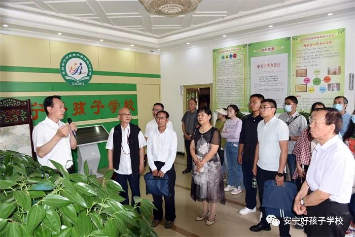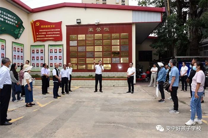 2023年6月8日,昆明市關工委未司項目指導辦主任趙久詩,副主任劉讓和、丁慧及昆明市各縣(市)區未司工作領導在安寧市未司辦主任李庭貴、共青團安寧市委書記高源、副書記徐濟炳等領導的陪同下,蒞臨我校調研指導工作。