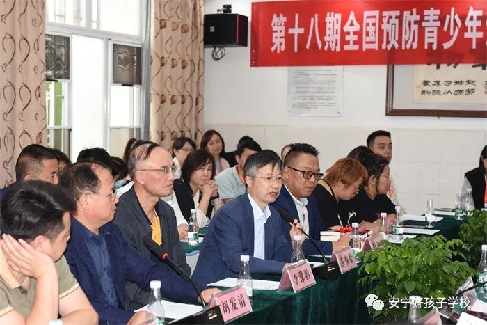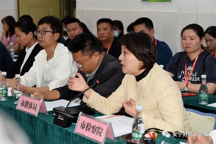 緊接著,召開了座談會。座談會伊始,魯校長介紹了出席領導。隨后,安寧市教育體育局副局長潘健致歡迎辭,并向領導們報告了安寧市的歷史沿革和全市教育事業發展的情況以及取得的各項成績。隨后,安寧市人民檢察院派駐溫泉檢察室主任孫曉宇向領導們作了安寧市預防青少年違法犯罪工作經驗報告。孫主任說道:“安寧既是全國文明城市,也是云南省唯一一家預防未成年人犯罪全覆蓋的地方。安寧市竭力打造社會、社工、社區‘三社’聯動的預防模式,把完善預防體系建設作為提升社會治理現代化的重要途徑。前端,有好孩子學校作為臨界預防和社會觀護的重要陣地;后端,把駐省未管所刑罰執行監督,作為教育改造涉罪未成年人、預防再犯的重要抓手,一體化推進未病先防、既病防變、疾后防復,探索出了具有安寧特色的預防未成年人違法犯罪工作新格局。而且引入國有化社會資源,幫助其就業,預防再犯。尤其是聯合教體、公安著力打造的‘靈雨之光’工作室,有力幫助了公安一站式取證和受害人的心理康復。此外,還聯合公安開展教職工入職查詢,對老師品德進行前期考察,織密校園安全防護網。”