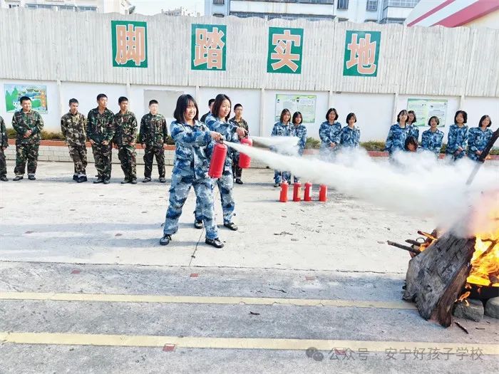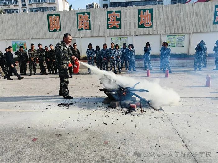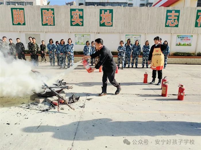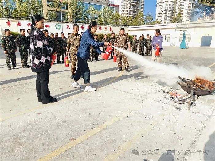 隨后,進(jìn)行了撲救演練。操場上的木材點(diǎn)燃后,火苗迅速變成了熊熊大火,張老師為師生們現(xiàn)場演示滅火設(shè)備(滅火器、高壓水槍)的使用方法,并一一指導(dǎo)大家親自操作。演練結(jié)束,張老師對(duì)本次活動(dòng)進(jìn)行了全面的點(diǎn)評(píng)和總結(jié),進(jìn)一步強(qiáng)調(diào)了安全逃生和火災(zāi)撲救中應(yīng)注意的問題。