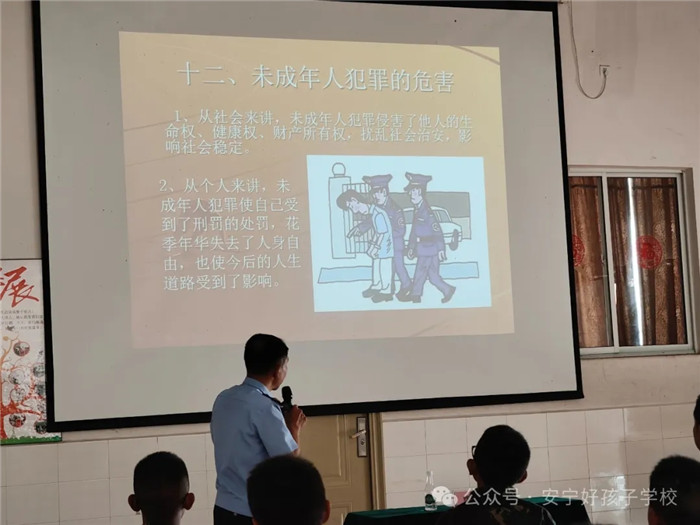 為進(jìn)一步強(qiáng)化未成年人法治宣傳教育的針對(duì)性、實(shí)效性,切實(shí)增強(qiáng)青少年的法律意識(shí)和自我保護(hù)能力,著力打造平安、文明、和諧的校園環(huán)境。2024年4月12日,我校特邀云南省未成年犯管教所繆呈勇警官到校為全體師生開展了一堂以“遠(yuǎn)離犯罪 健康成長”為主題的法治教育講座。