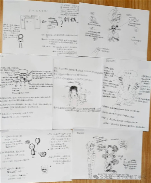 最后,孩子們在作業中圖文并茂地展示了自己的收獲。有的孩子把自己的學習壓力畫成階梯式的樣子,詳細記錄自己的感受與想法,并鼓勵自己在塵埃落定前都要奮力一搏。有的孩子把曾經的挫折以石頭或烏云的方式呈現出來,告誡自己不能因為一點困難就放棄,世上無難事,只怕有心人。還有的孩子以精美的漫畫呈現了自己的挫折,并根據自己的情況尋找解決的方法,并對結果進行了預測......