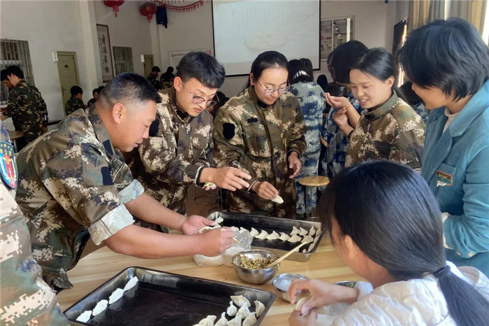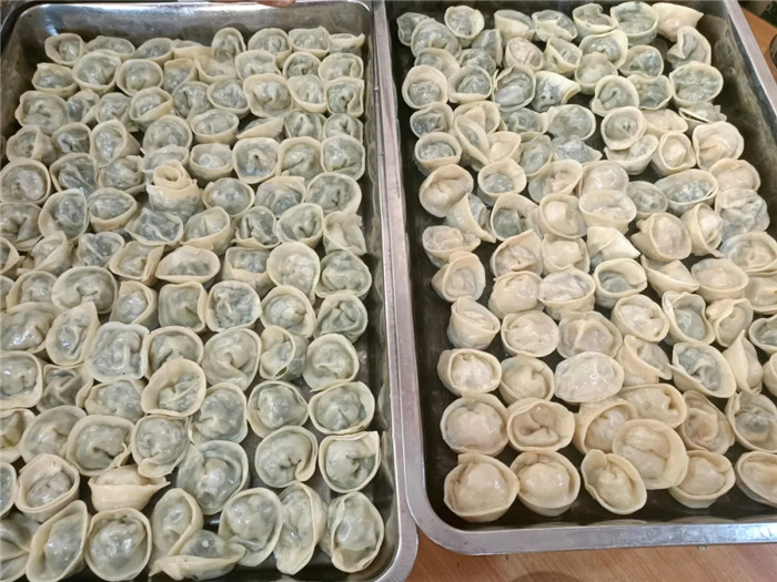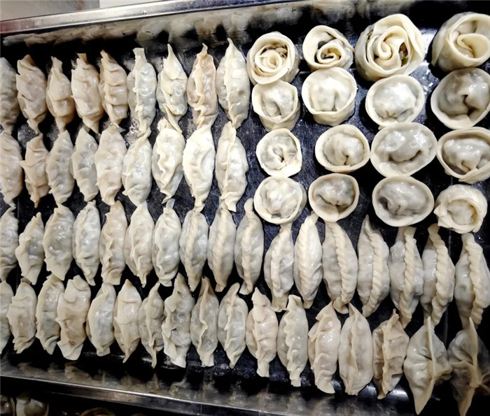 多功能食堂里,燈光溫暖,人影忙碌,氣氛熱烈,歡聲笑語交織,大家都在熱火朝天地為包餃子做準備。餃子餡的種類豐富多樣,韭菜的清香、芹菜的爽脆、肉餡的醇厚,每一種餡料都在撩動著大家的味蕾。