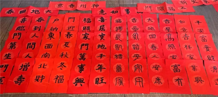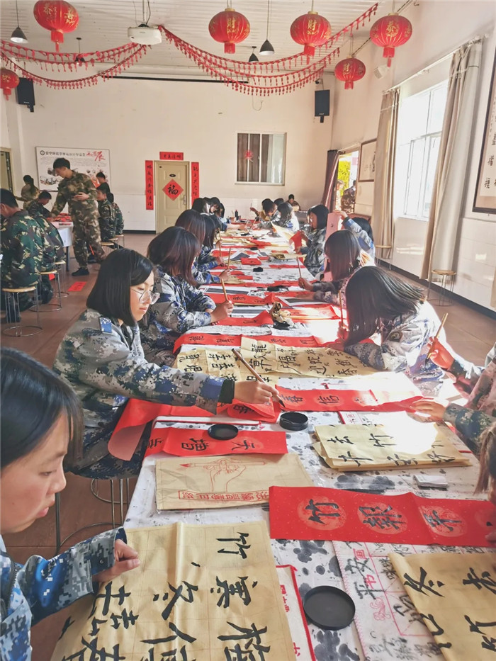 春聯紙上,孩子們筆走龍蛇。有的筆法雖顯稚嫩,卻充滿童趣;有的運筆嫻熟,字體剛勁有力。春聯內容豐富多樣,有贊頌祖國繁榮昌盛的豪邁之語,有抒發家庭幸福美滿的溫馨之言,還有祈求學業進步的懇切之詞。不一會兒,一副副對仗工整、寓意吉祥的精妙詞句便在同學們的筆下應運而生,傳遞出的皆是對新年的美好祝愿。老師寫的福字更是獨具特色,雄渾大氣,無不飽含著對幸福生活的美好向往。現場,紅彤彤的紙張映照著孩子們燦爛的笑顏,新春的喜悅氣息如春風般撲面而來。