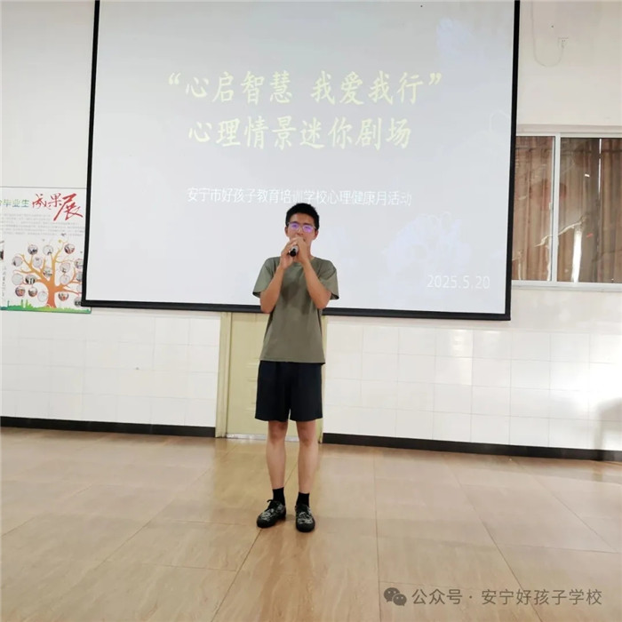 “情緒猜猜猜”活動里,“激動”“焦慮”“嫉妒”等10種情緒成為“主角”。同學們踴躍上臺,用極具感染力的肢體語言和生動表情,將不同情緒演繹得淋漓盡致。臺下同學不僅要精準判斷情緒類型,還要大膽推測對應場景。有的把 “考前找不到準考證”時的慌亂焦慮演繹得惟妙惟肖,有的將“被沒收手機”后的委屈憤怒詮釋得入木三分。熱烈的互動與歡笑聲中,孩子們不僅鍛煉了敏銳的觀察力,也學會精準識別情緒、共情他人,更讓他們懂得:情緒并無對錯之分,學會接納與合理釋放才是心靈健康的關鍵。