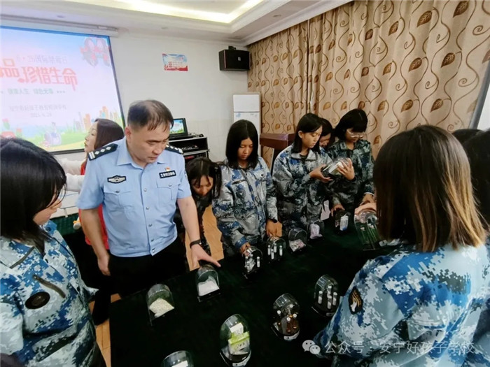 為讓抽象的毒品概念具象化,警官們還組織同學們分組有序參觀毒品仿真模型。在觀摩過程中,警官們全程耐心答疑解惑,讓同學們對毒品的真面目有了直觀認知。同時,還積極動員同學們投身全民禁毒行動,鼓勵大家發揮“小手拉大手”的輻射效應,以“教育一個學生,帶動一個家庭,影響整個社會”的方式,凝聚全社會力量,構建起堅不可摧的“人民禁毒網”,共同守護純凈社會環境。