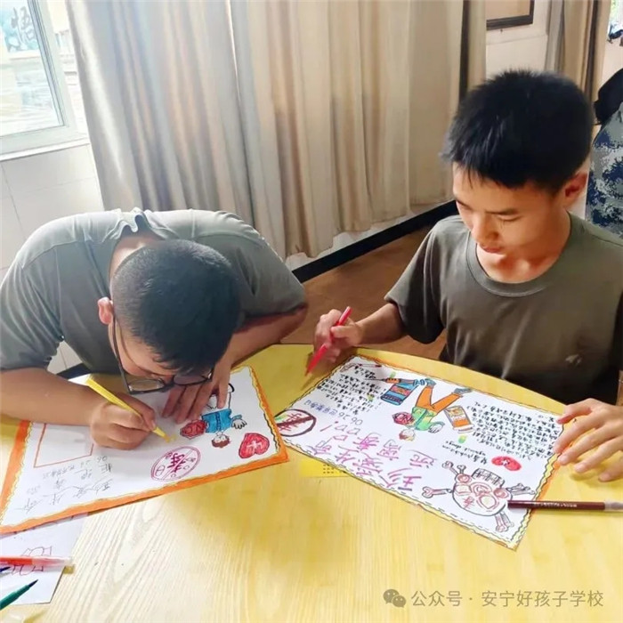 下午,一場充滿創意的禁毒手抄報創作活動在多功能室火熱開展。同學們將上午所學轉化為藝術表達,用漫畫揭露毒品騙局,用色彩描繪無毒未來。一幅幅作品構思巧妙、寓意深刻,既展現了同學們的藝術才華,更表達了他們對毒品堅決抵制的決心。