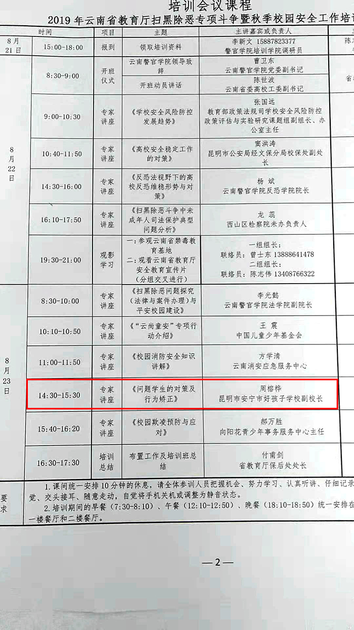 2019年8月22日—23日,云南省教育系統(tǒng)掃黑除惡專項斗爭暨秋季校園安全培訓(xùn)工作會議在云南警官學(xué)院隆重召開,我校受省教育廳的邀請參加了本次會議。